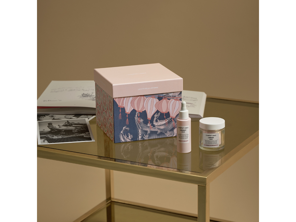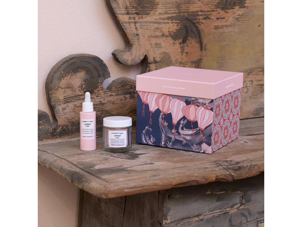Forkæl dig selv eller en du holder af med comfort zones lækre gaveæske The Hidden Cities, Luminant kit. Den indeholder 2 lækre produkter.