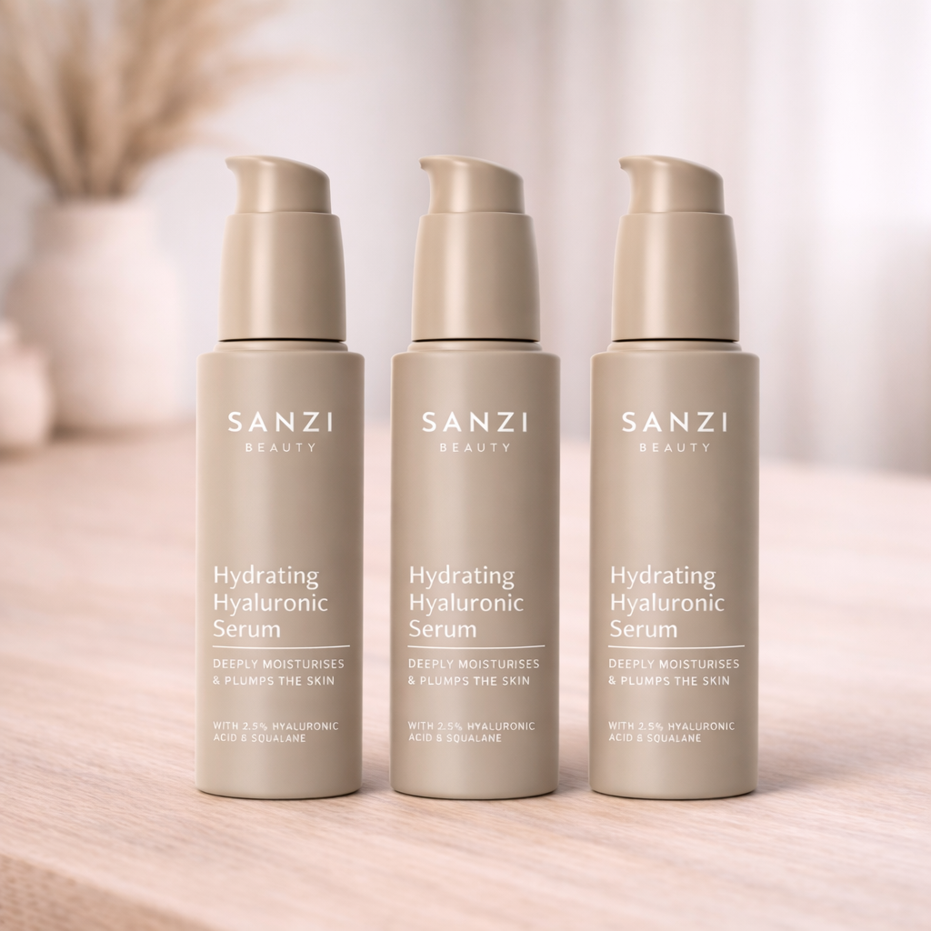 SANZI BEAUTY Hydrating Hyaluronic Serum er din daglige genvej til fyldig, glat og spændstig hud. Med hele 2,5% hyaluronsyre i 5 molekylære størrelser fugter serummet alle hudlag, hvor huden har mest brug for det. Resultatet er øjeblikkelig komfort, langvarig fugtbalance og en frisk, sund glød – helt uden parfume.