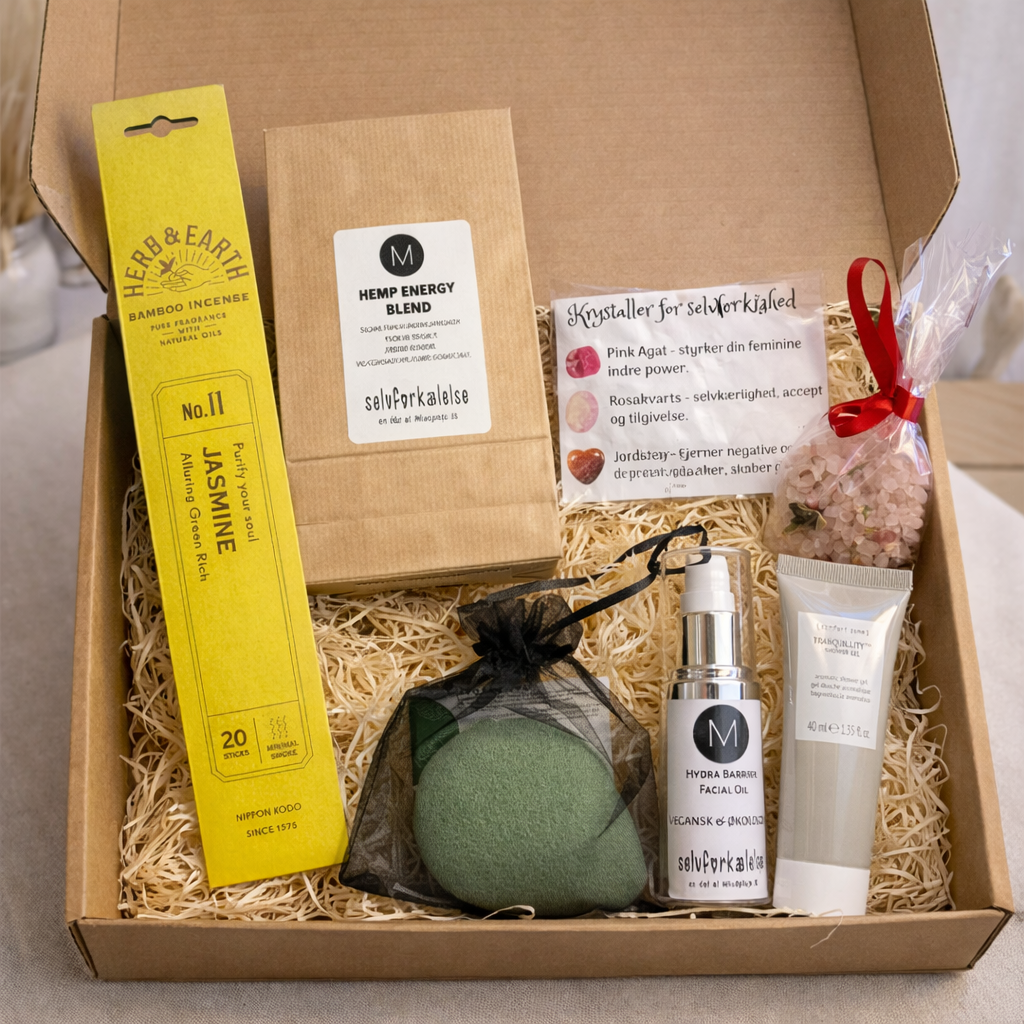 Self Love Kit 2026 fra M Hudpleje er skabt som et sanseligt pusterum i en travl hverdag. Kittet samler nøje udvalgte produkter, der arbejder i harmoni for at styrke selvkærlighed, hudens balance og mental velvære. Det er ikke bare hudpleje – det er et dagligt ritual, hvor du giver dig selv lov til at trække vejret dybt og mærke roen brede sig.