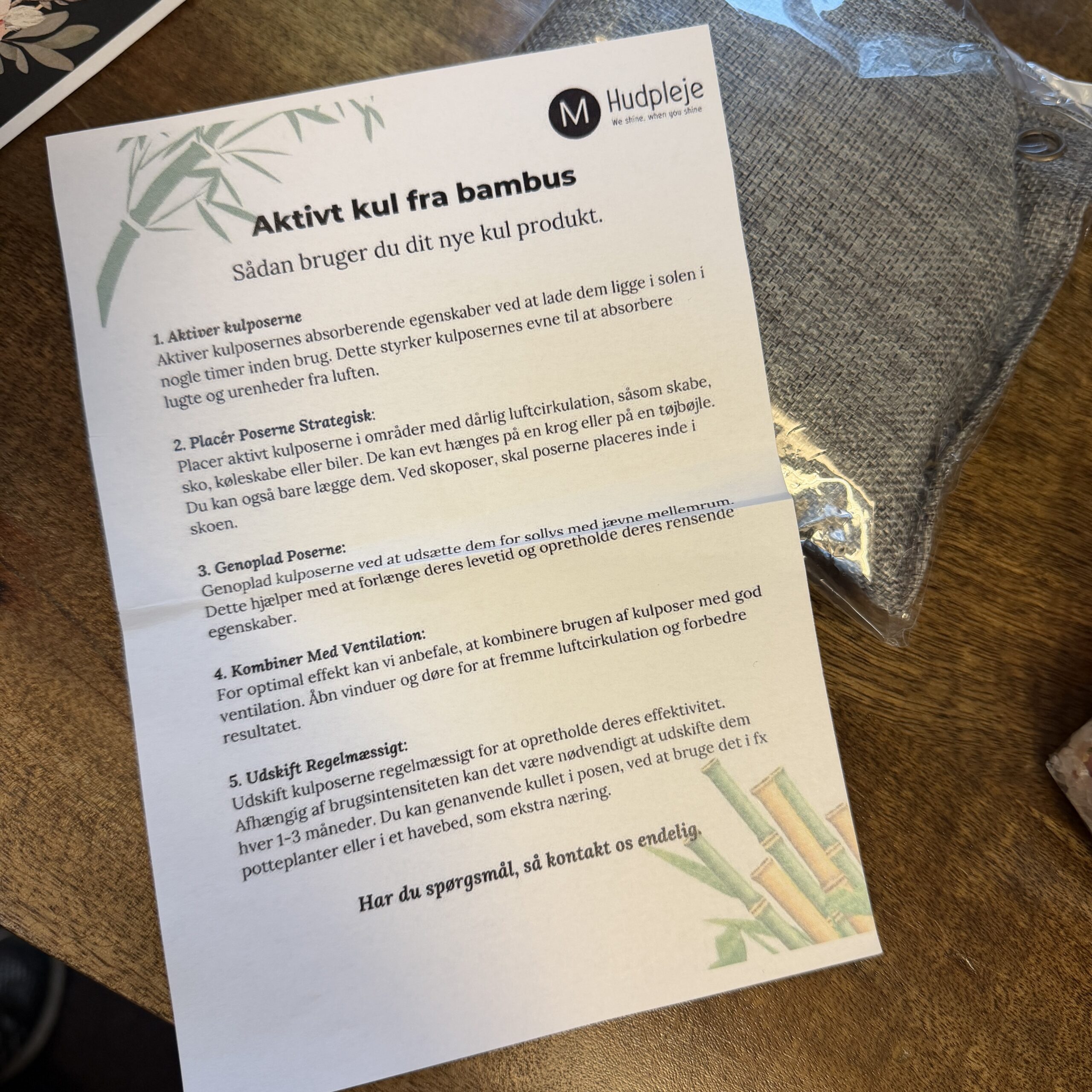 - Pose med aktiv kul til rensning af rum/skabe/skuffer.